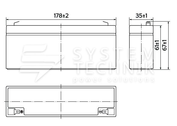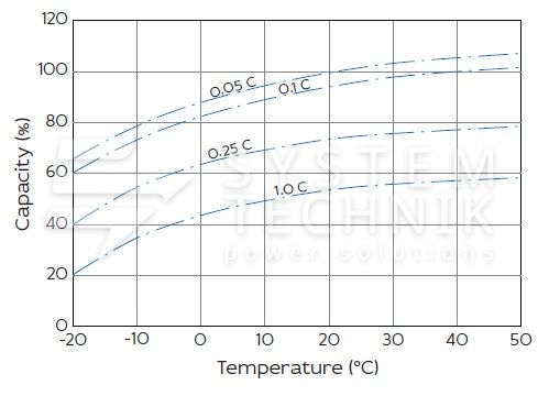 - Срок хранения без подзаряда: 6 мес. при 25°C;