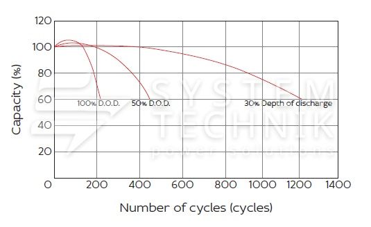 - Срок хранения без подзаряда: 6 мес. при 25°C;