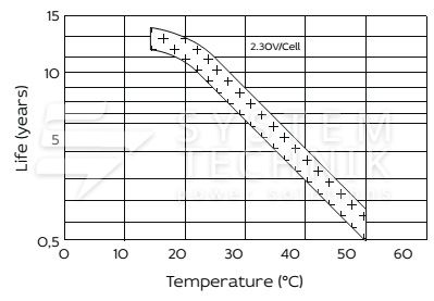 - Срок хранения без подзаряда: 6 месяцев при 25ºС;