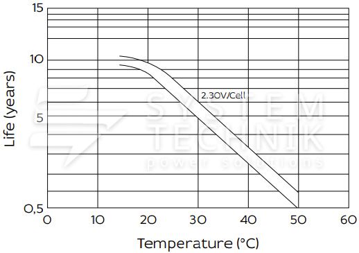 - Срок хранения без подзаряда: 6 мес. при 25°C;