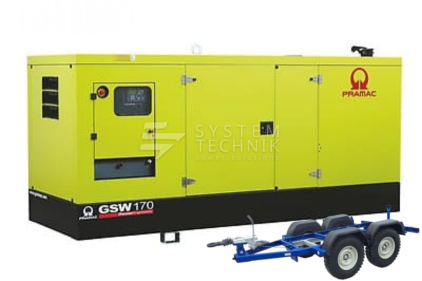 - Дизельный генератор Pramac GSW 170 V 400V В кожухе на прицепе